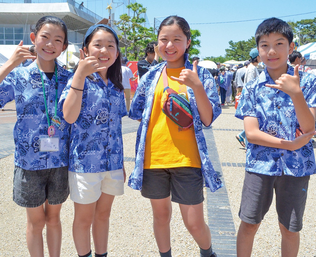 茅ヶ崎市の青少年海外派遣事業として、派遣団「レインボー・キッズ」が3月に5泊7日の日程でホノルル市・郡に赴き、現地の小学生らと交流した。11日にはイベント・茅ヶ崎アロハマーケットの中で来場者を前に活動報告会を開催。両市の文化への理解を深めたほか、言葉が通じない中でも楽しく交流した経験を話し、笑顔を見せた。