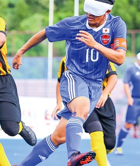 ブラインドサッカーとは、キーパー以外全盲の選手がアイマスクを装着し、音の出るボールを使って行う5人制サッカー。選手たちは感覚を研ぎ澄ませ、声や音、仲間を信じる気持ちを頼りにプレーしている。