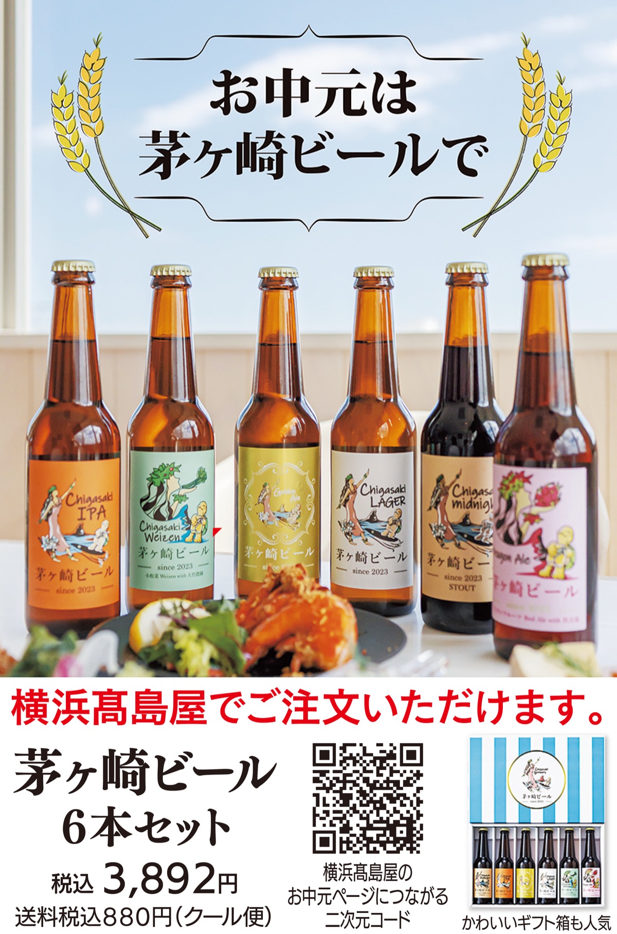 今年のお中元は、贈られてうれしい地元クラフトビールはいかがだろう。サザンビーチ沿いのブルワリーでつくる「茅ヶ崎ビール」が横浜髙島屋で注文できる。髙島屋ギフトセンターまたはオンラインストアで受け付けている。
