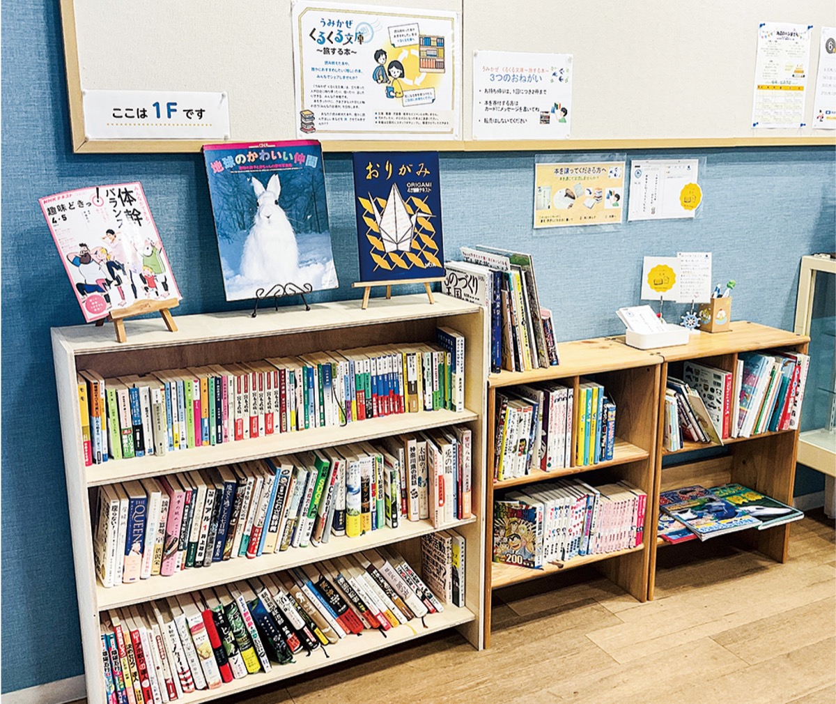 茅ヶ崎公園体験学習センターうみかぜテラスは、6月1日から1階交流スペースにシェア本棚を設置し、「うみかぜ くるくる文庫〜旅する本〜」の取り組みを行っている=写真。