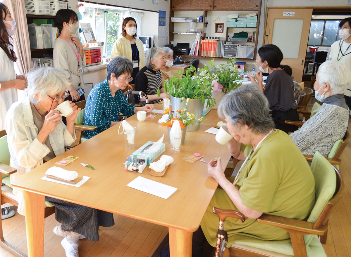 NPO法人・介護の会まつなみが運営する松浪の地域密着型通所介護事業所「まつなみクラブ」で3日、出張カフェ企画が行われ利用者らがハーブティーを試飲した。