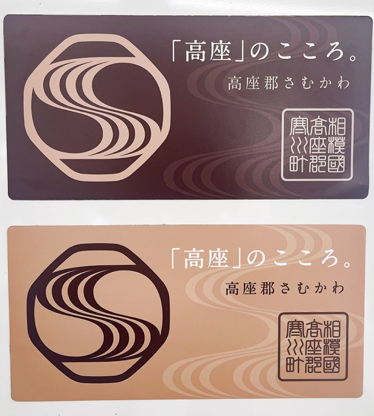 寒川町は、『「高座」のこころ。』ブランドを意匠にしたオリジナルデザインの車両用マグネットステッカーを製作し、希望する企業や個人に無料配布している。商用車などへの貼付を想定しており、多くの人の目に触れることで、同ブランドをより身近に感じてもらうことが目的。