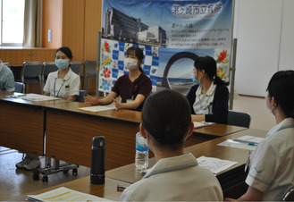 また先輩看護師との座談会も行われ、入職3年目の松村冴さんが患者とのエピソードややりがいなどについて話した。松村さんは循環器や腎臓、リウマチの患者に対応する部署に所属。学生からの「自分もできるか不安」という声に対し「たくさんのことを教えてもらえるから大丈夫」と答えた。松村さんは「緊張感の伴う仕事だけれど、やりがいや喜びを感じることもたくさんある。こうした機会で看護師という仕事の魅力を伝えたい」と話した。シャドウイングを行った新藤愛奈さん(大学3年)は「1年目の看護師の方が頑張っている姿を見て自分もなりたいと思った」と話し、福尾菜季さん(大学3年)は「就職後のイメージがしやすくなった」と話した。