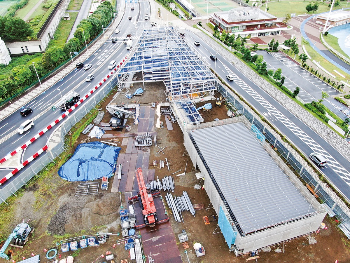 2025年7月オープン予定の「道の駅 湘南ちがさき」の工事が進んでいる。道の駅整備運営事業者ちがさき未来プロジェクトグループ(代表企業=大和リース株式会社横浜支社)担当者によると、8月28日時点では、店舗等が入る地域振興拠点の鉄骨工事の終了が近い状態だという。