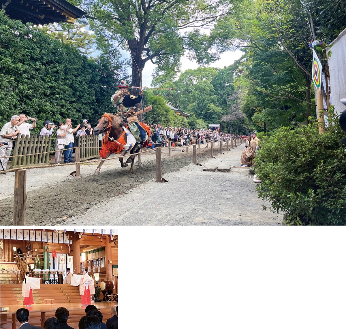 境内に設けられた馬場には何重もの人垣ができ、矢が的に的中すると、観客から大きな拍手と歓声があがった。