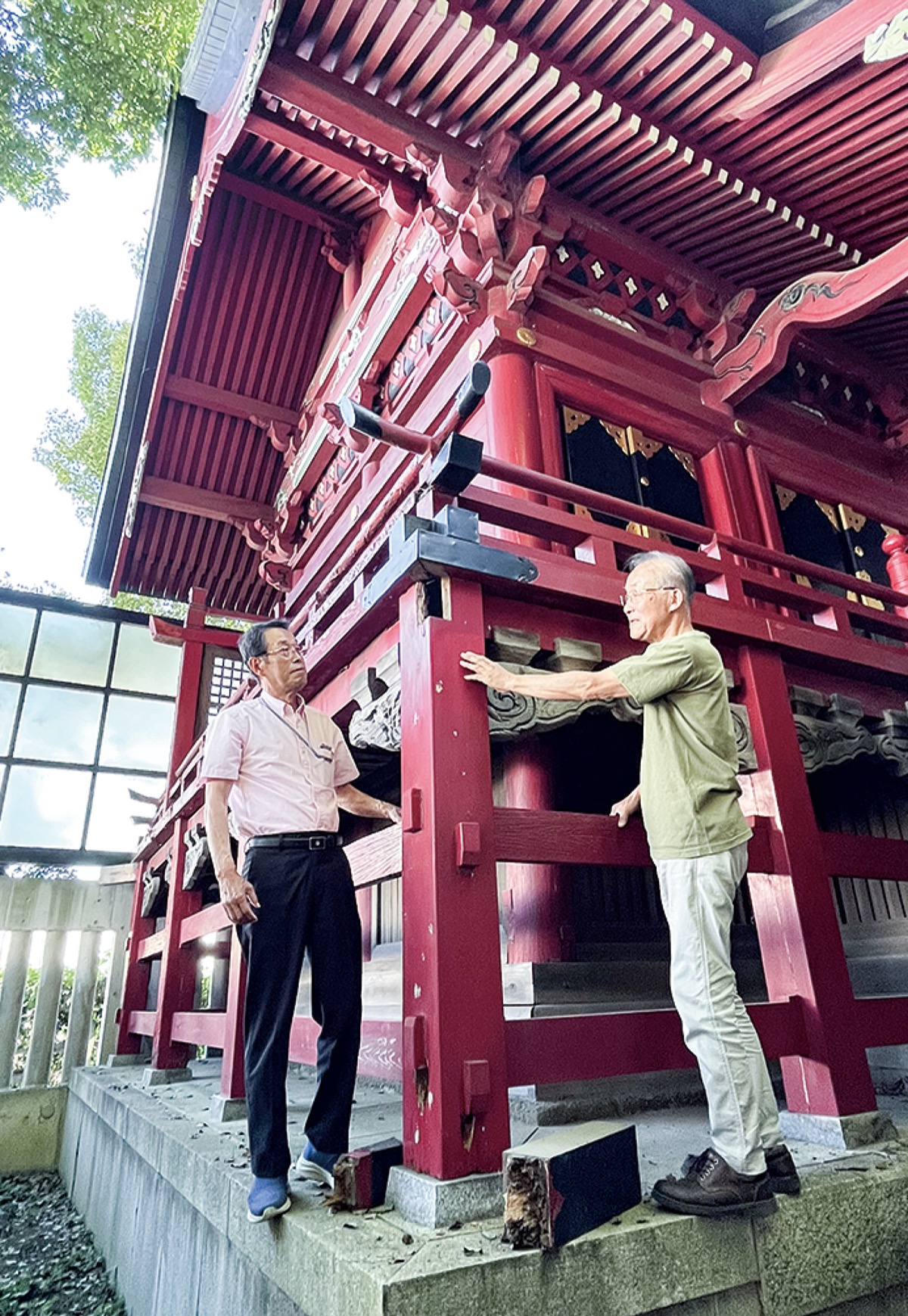 倉見神社(寒川町倉見46)の本殿と神輿が老朽化に伴い修復されることとなった。本殿は280余年前に造営された町最古の建造物で、重要文化財に指定されている。本殿は来年10月2日の例祭に間に合うように、神輿は来年の浜降祭に向けて修復完了を目指す。