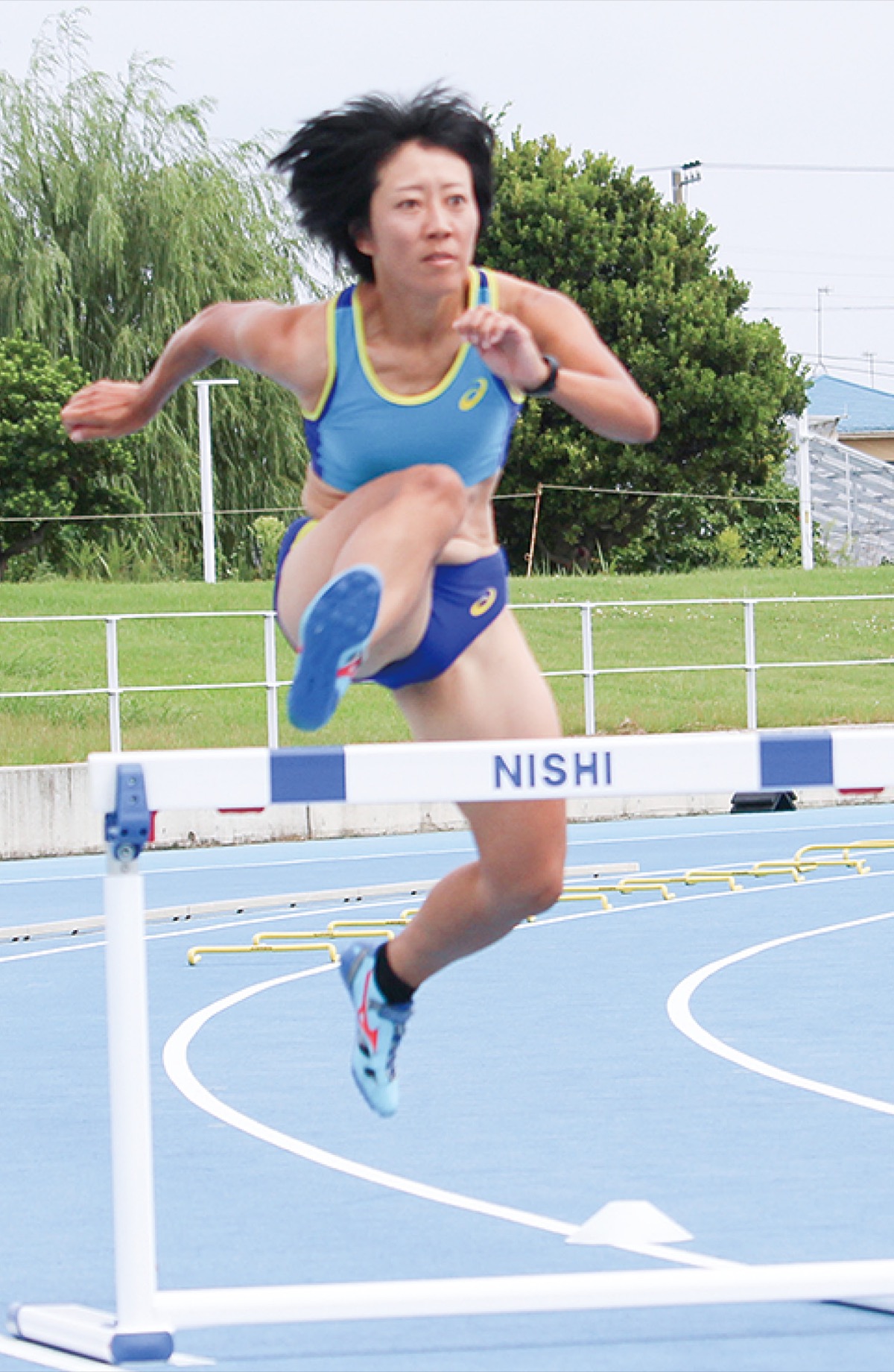 今は介護の仕事と子育てをしながら、自宅前にハードルを並べるなどして練習に励む。「40代の自分が競技をすることで、若いみんなには無限大の可能性があると感じてほしい。『あのオバサンに負けるものか』と頑張ってくれたら」と話す。また「10月20日の市総合体育大会でも記録をつくり、ひとつでも多く名前を残し、納得がいくまで走り続けたい」と話している。