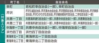 実験事業は来年4月1日から26年3月31日まで8エリア=左表=約6600世帯(集合住宅も含む)で実施される。品目は燃やせるごみ。