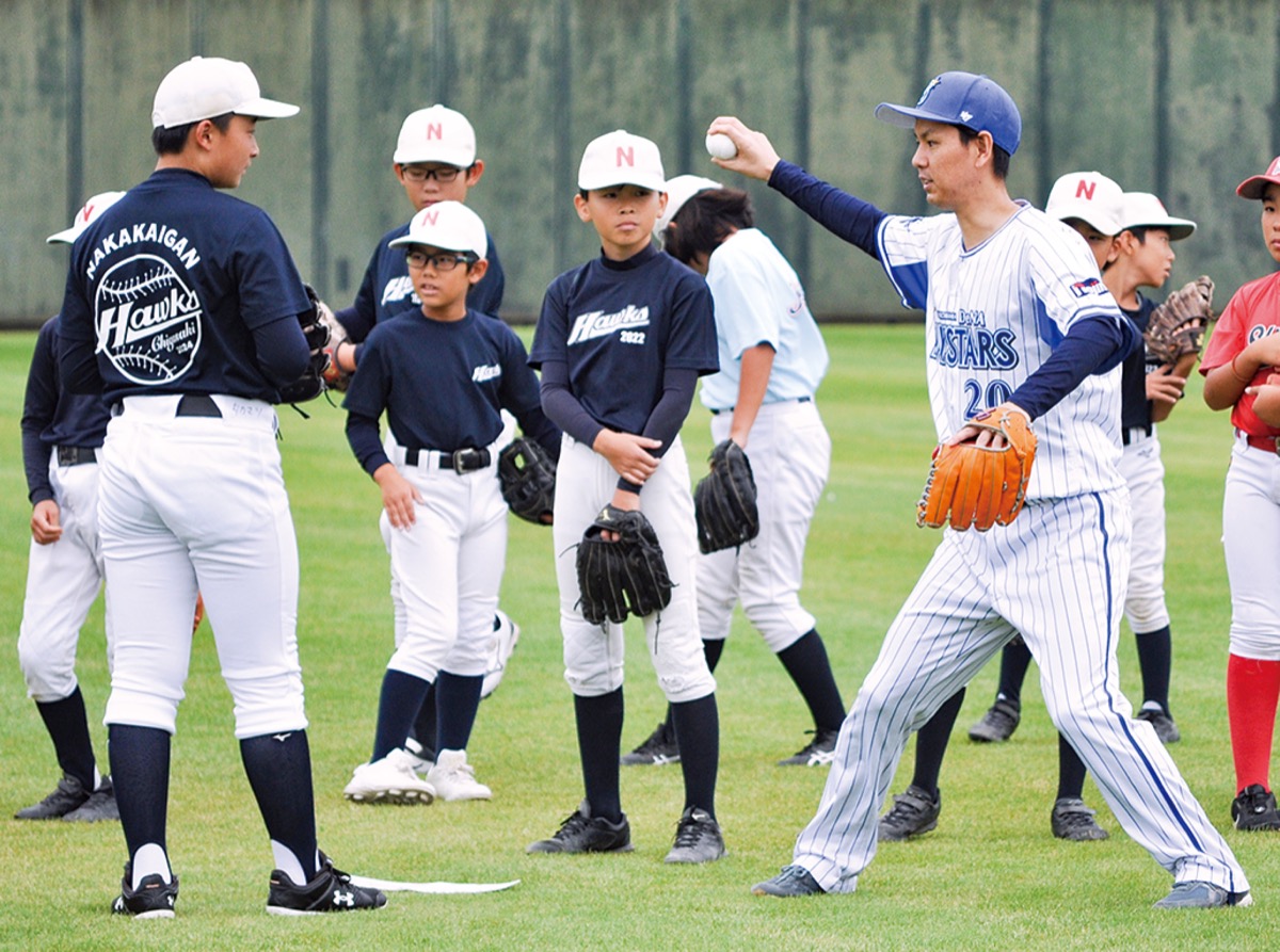 この日は茅ヶ崎市内の少年野球チームに所属する選手約70人が参加。元プロは田村さんに加え、須田幸太さん、石川雄洋さん、宮本秀明さんが来場した。田村さんらは実際にプレーなども見せながら「キャッチボールは一球一球に集中しよう」などと呼びかけた。