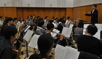 この日は県内だけでなく東京都や千葉県、埼玉県などから39人が参加。トランペット奏者の柳瀬圭吾さんの指揮・指導で『名探偵コナン メインテーマ』『宝島』『星条旗よ永遠なれ』の3曲を演奏した。