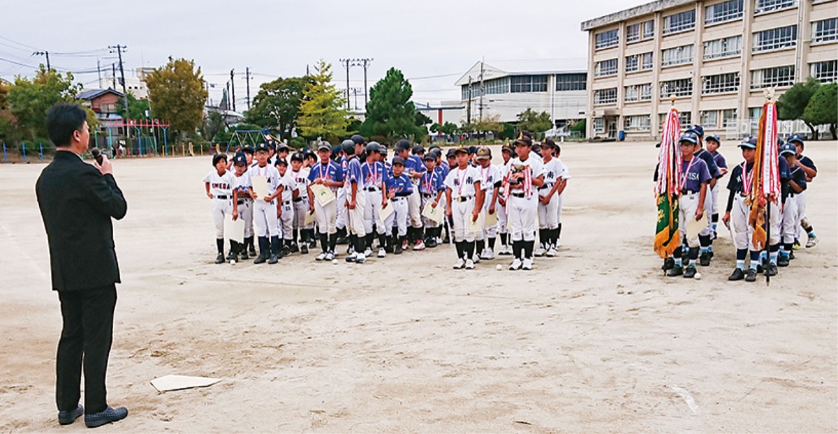 10月27日には梅田地区少年野球大会の閉会式をメンバーが訪問し、ボールを手渡した。