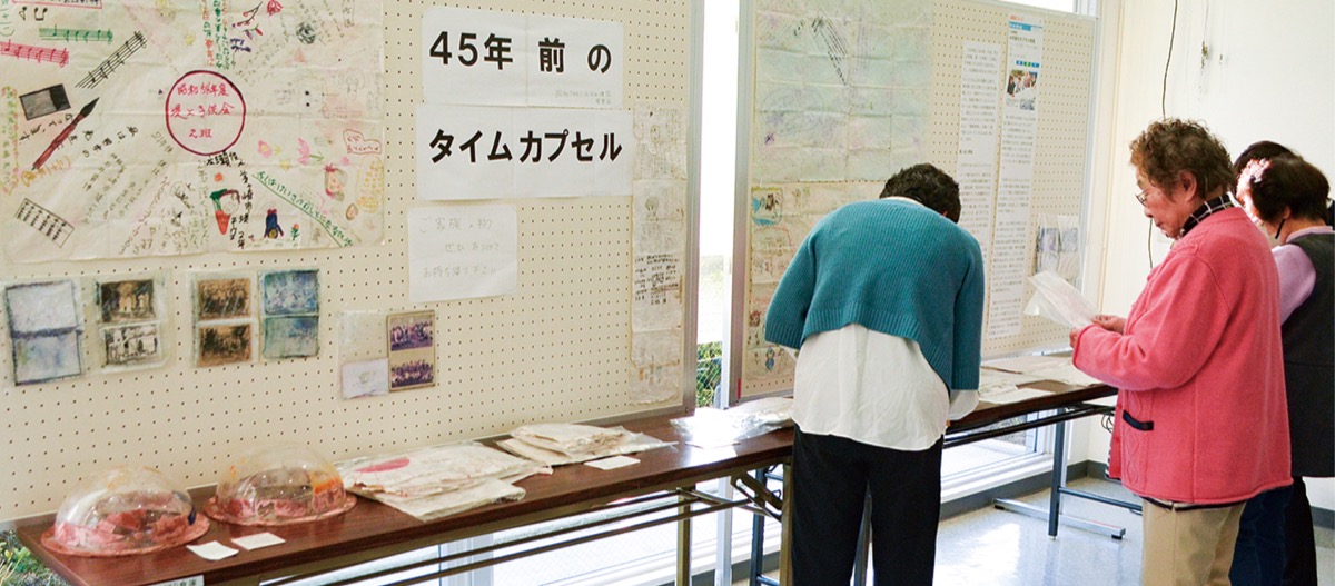 埋設当時、小出小学校6年生で、展示会を運営する川口(旧姓吉田)ひとみさんは「この時代の子ども会のお母さんたちは地域の子どもたちの名前を皆知っているぐらい、身近な関係にあった。そんな温かい雰囲気を感じてもらえたら」と話している。
