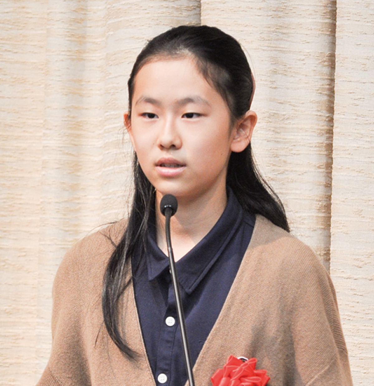 学生の部で最優秀賞を受賞したのは「今の私にできること〜地球温暖化を食い止めるには〜」をテーマにした長谷部紗世さん。地球温暖化対策に強い関心を持つ長谷部さんは、水素エネルギー社会の実現が有効として、ドイツで見た「環境人得システム」の普及を訴え「自分自身の力で未来を切り開く可能性を感じた」と評価された。
