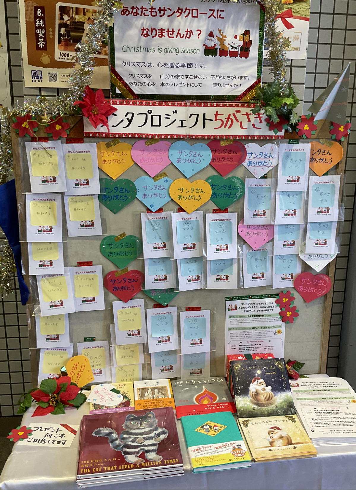 サンタ・プロジェクトちがさきは18日(水)まで、子どもたちに本を贈る「サンタクロース」を募集している。茅ヶ崎市の長谷川書店ネスパ茅ヶ崎店(元町1の1)・南口駅前店(幸町2の10の106)、川上書店ラスカ茅ヶ崎店(元町1の1ラスカ5F)が協力。