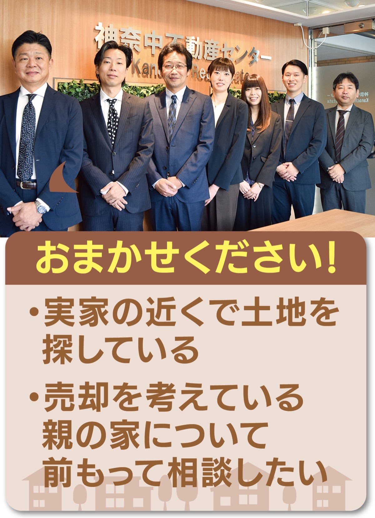 地域の公共交通「神奈中バス」でおなじみ、神奈川中央交通の不動産部門「神奈中不動産センター」は、物騒なできごとが多い中、安心して「相続対策」を任せられる地域密着企業。まずは所有している不動産の価値を知ることから。無料査定も行っており、売却や買取なども「ワンストップ」で応えてくれる。