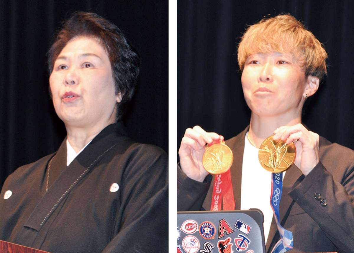 ソフトボール日本代表として五輪で金メダル2つ、銅メダル1つを獲得した山田恵里さんと、22年に皇后杯第55回全日本女子弓道選手権大会で優勝した三澤京子さんによる記念講演会も開催。