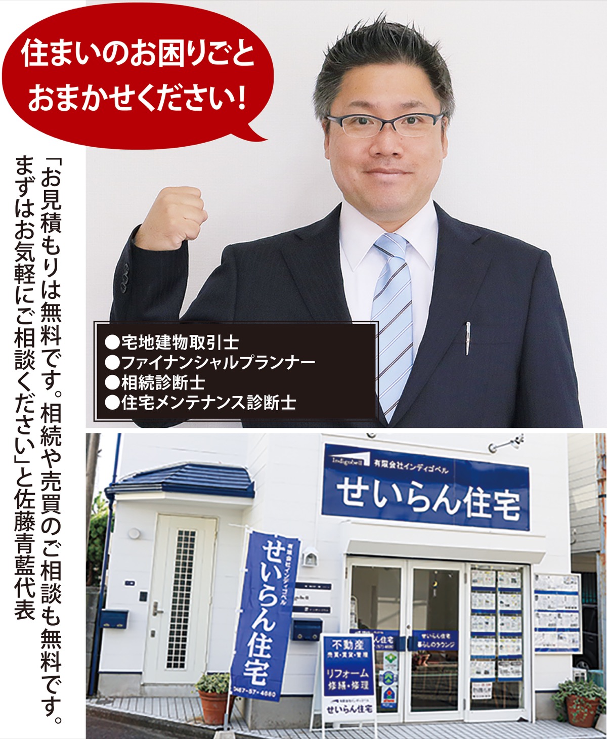 不動産業では売買や賃貸の仲介、建物の管理と幅広く行っている。だが、会社の基本的姿勢は「お困りごとの解決」であり、相談事が多く寄せられることから、ファイナンシャルプランナーや”相続診断士”の資格を持った宅建士が丁寧に対応している。