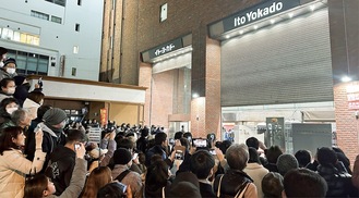 午後7時の閉店時間が近づくにつれ、入口付近は数百人の人であふれ、「お世話になりました」などの声が飛んだ。ガラス越しの店員に向かって「ありがとう」と手を振る客の姿もあった。