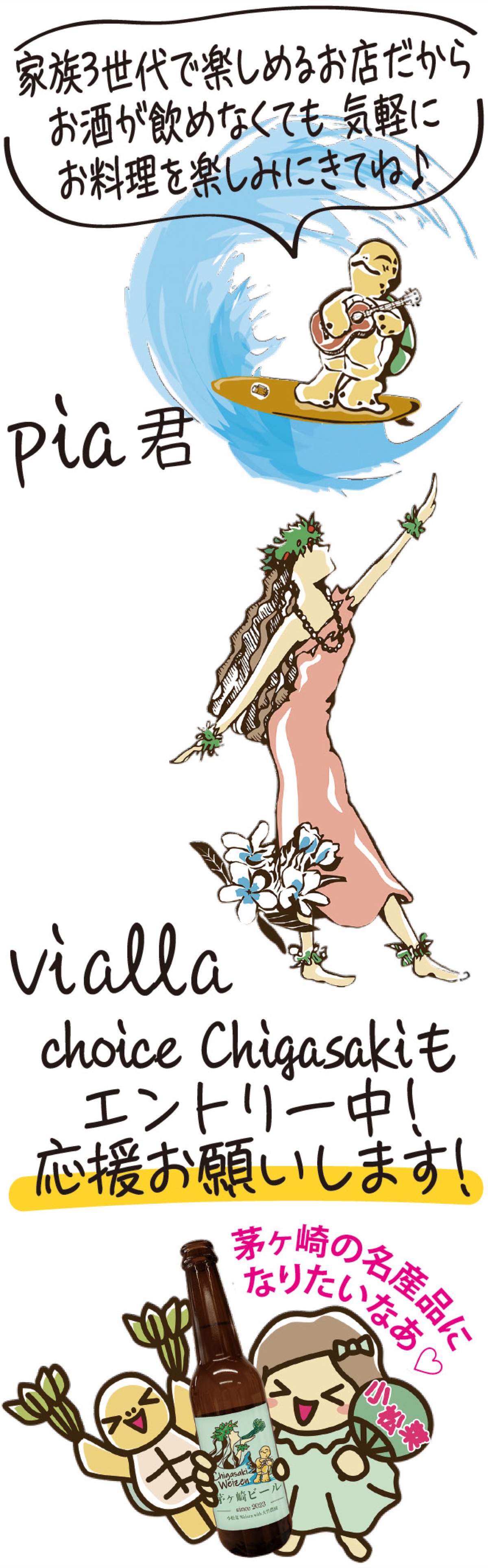 この素敵な茅ヶ崎を気に入ったpia(ピア)君とvialla(ヴィアラ)は末永く地域の皆が「喜んでくれることができないか?」と考えはじめました。