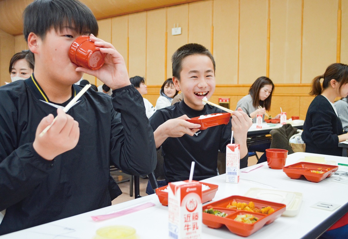 来場した東海岸小学校6年生の2人は「肉も魚もどっちも好き。おいしい」とし、母親は「1日単位で頼めるのが助かる」と話していた。
