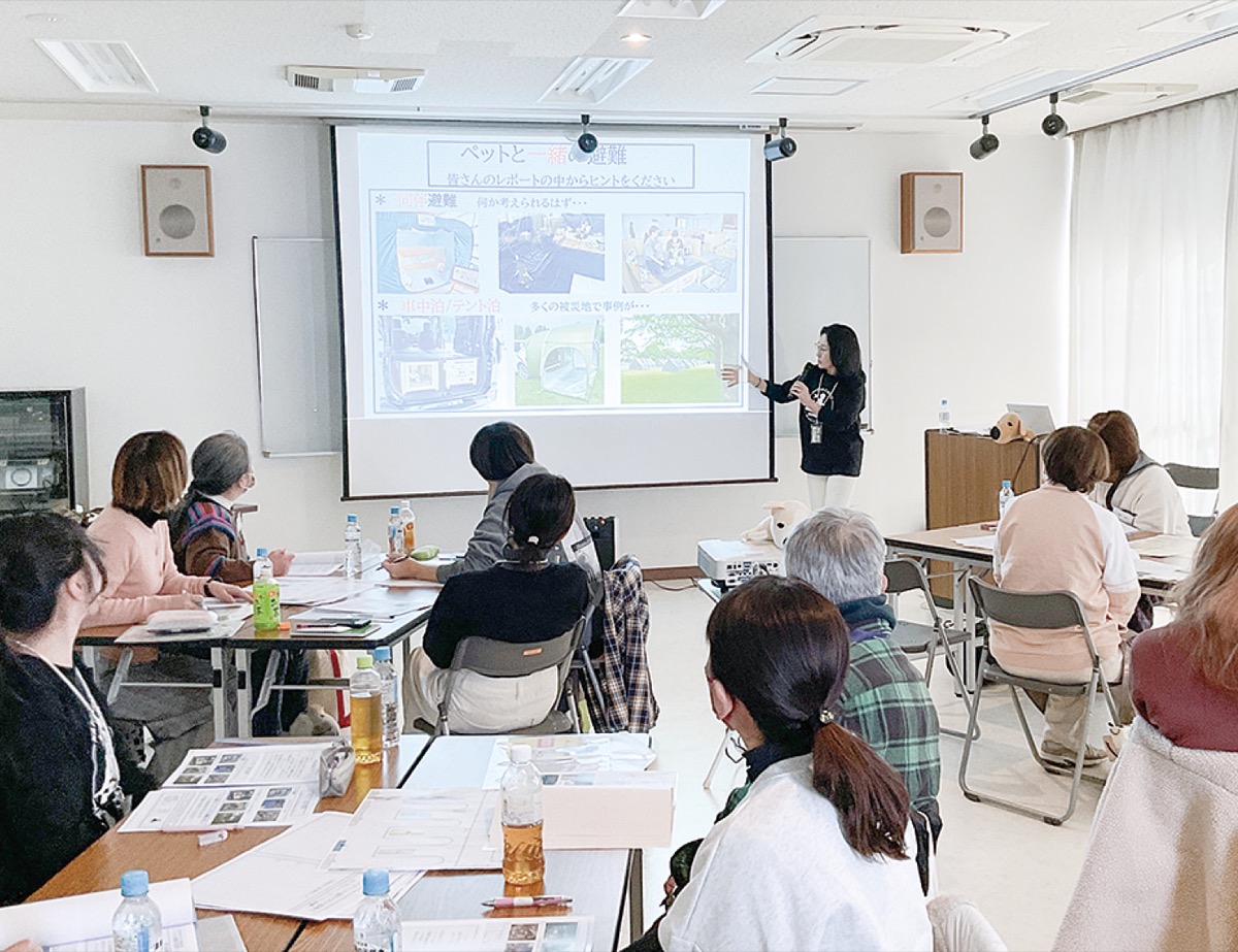 当日は、同会防災安全部会会長で防災士の山田秀砂さんが講師を務め、同行避難に必要な知識を学び、ペットの大きさ等で振り分けるための共通基準などをグループで話し合った。その後、災害時のフードの備え方や避難所で起こりやすいペットの体調不良などの説明がされた。主催者は「誰も取り残されない避難所運営が必要。今後も知識を共有し、有事に備えたい」とコメントした。