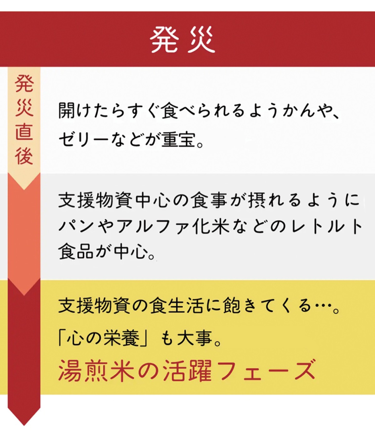 被災体験者や有識者からの高評を受け商品化し、有益なものだと県栄養士会危機管理委員会からの推奨も取り付けた。ウェルカムベビープロジェクトやRC(ロータリークラブ)などの地域貢献活動にも力を入れる同社の大森社長は「皆さまの防災のお役に立てれば」と話している。