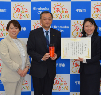 三菱UFJ銀行茅ヶ崎支店(遠山順子支店長)と平塚支店(藤原伸子支店長)が3月11日、平塚市に防災ボトル約420本を寄贈した。