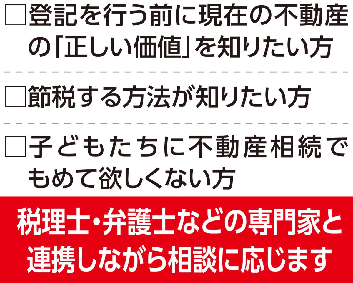 また同社では売却サービスを豊富に展開。▽空き家の相続対策を進めたい▽自宅の家具や荷物もまとめて片付けたい▽施設や駅近へ住み替えたいが何から始めたらいいか-。「数ある選択肢の中から、お客様にとって最適な売却方法を提案します」とスタッフ。期間内で確実に売却したい人には売却保証システムも好評だ。査定・相談無料。まずは気軽に電話で相談予約を。