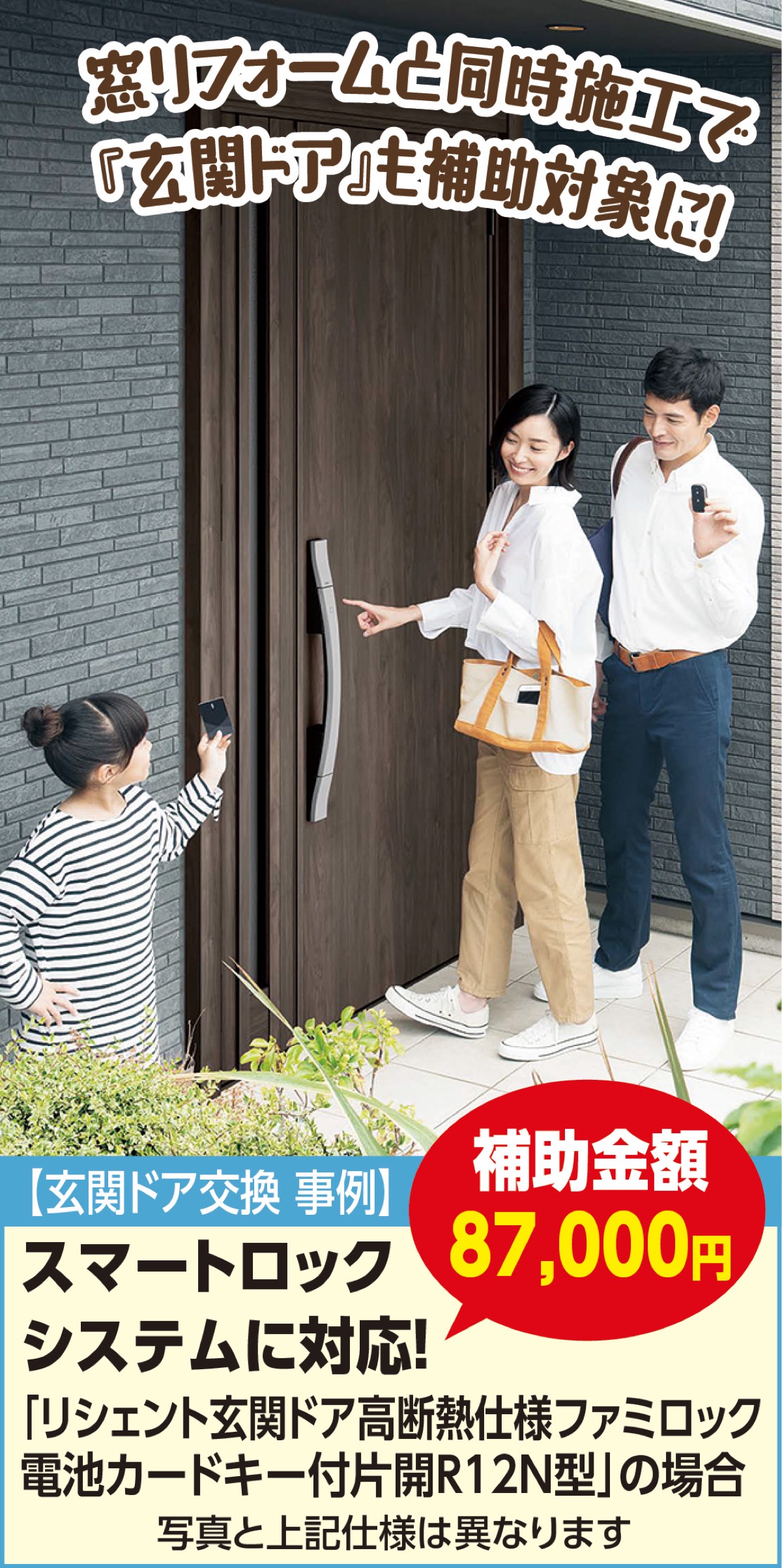 暑い、寒い、結露で家が傷んだなどの問題には、国の補助金制度を活用した外窓交換・内窓設置の機能強化リフォームがおすすめ。スマホ等で施解錠を行える最新式の錠前を採用した「高機能玄関ドア」も窓リノベと同時施工で補助金対象に!防犯性もアップし、快適で安心な住まいにお得にリフォームできる。