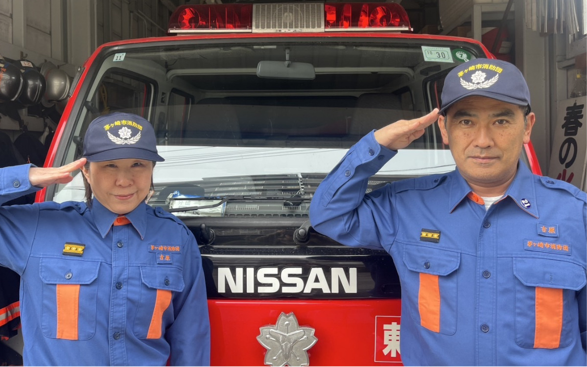 普段は自営業者やサラリーマン、主婦、学生をしながら、火災や災害など「いざ」という時に現場に駆けつけ街を守る消防団員。茅ヶ崎市内では、393人の団員が活動する。そうしたなか、矢畑在住の吉原雄(たける)さん(57)と宣美(ひろみ)さん(57)夫妻は2024年度、市内で初めて夫婦で分団長を務めた。