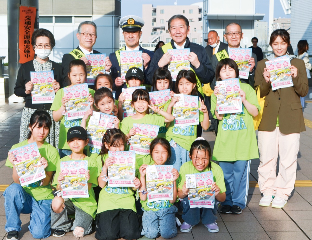 当日は、市内を中心に活動するヒップホップダンスチーム「CREAM SODA」の小学生13人が、(一財)茅ヶ崎地区交通安全協会(佐藤たゑ子会長)が制作した交通安全啓発ソング「守ろうよ。」に合わせた演技を披露。参加者はたすきを着用して市民に啓発物品を配布した。