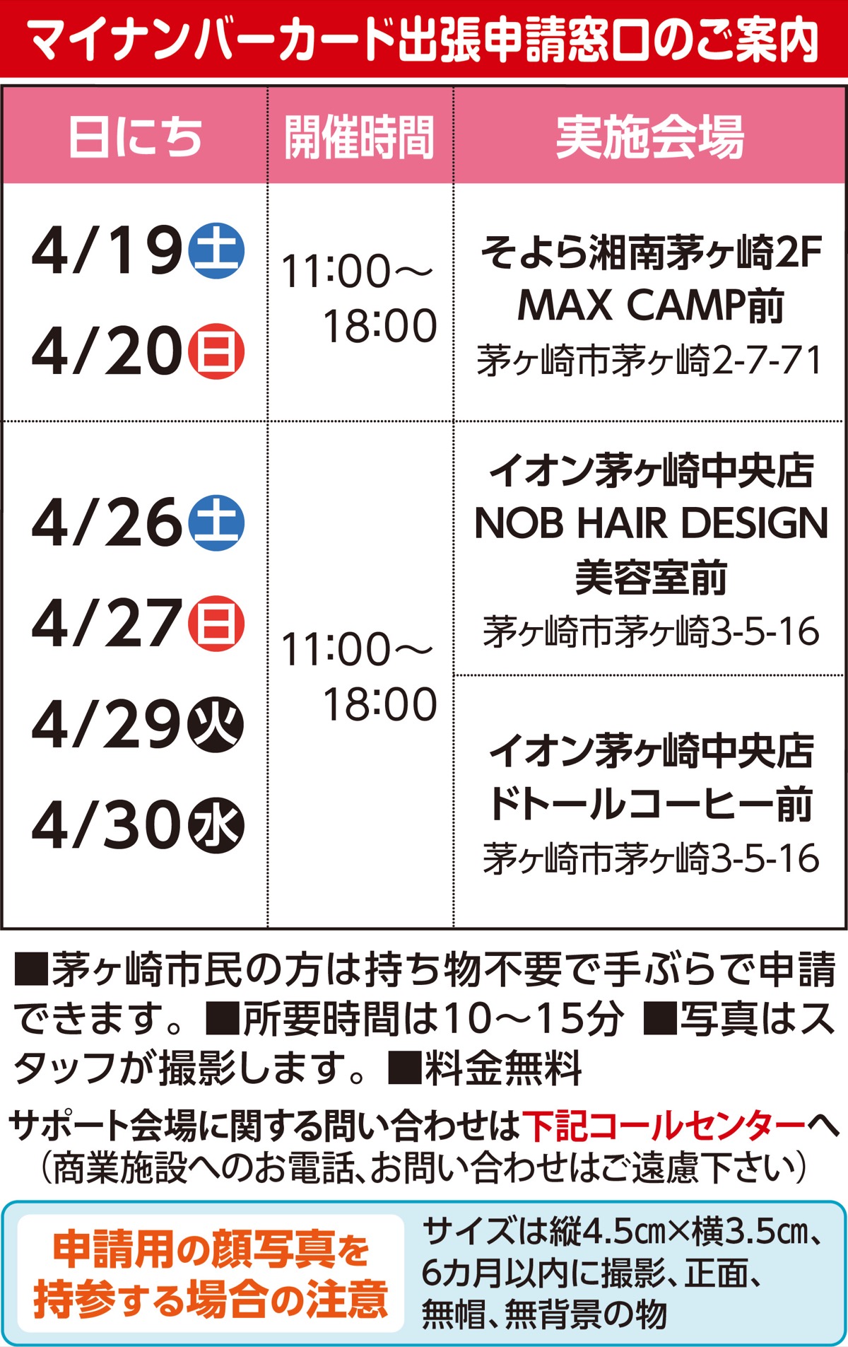 本人確認書類や健康保険証としても使える「マイナンバーカード」。茅ヶ崎市は申請の負担軽減のため今年度も出張申請サポートを行う(申請者本人の来場が必要、代理人での申請は不可)。