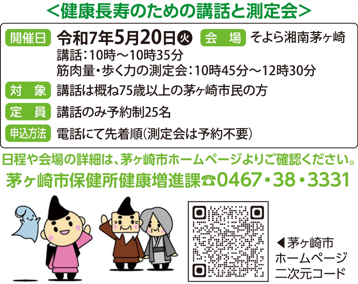 茅ヶ崎市では『健康長寿のための講話と測定会』と題したイベントを開催します。