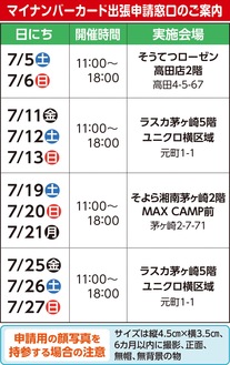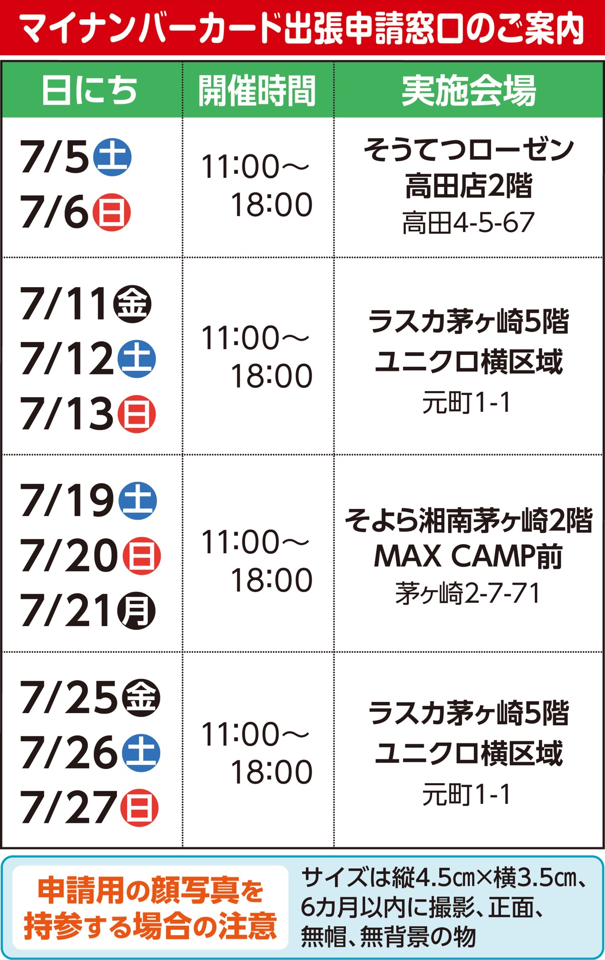 本人確認書類や健康保険証としても使える「マイナンバーカード」。茅ヶ崎市は申請の負担軽減のため今年度も出張申請サポートを行う(申請者本人の来場が必要、代理人での申請は不可)。