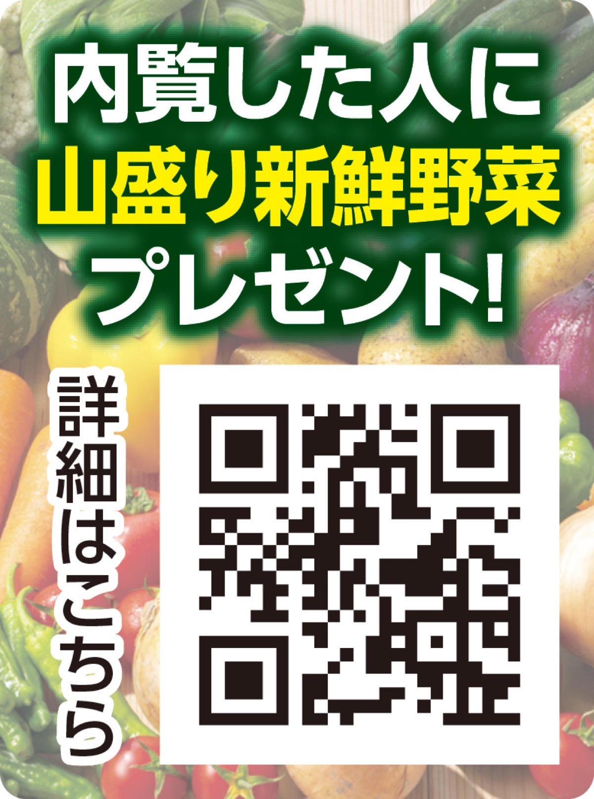内覧した人には、山盛り新鮮野菜をプレゼント!まずは下記から詳細確認を。