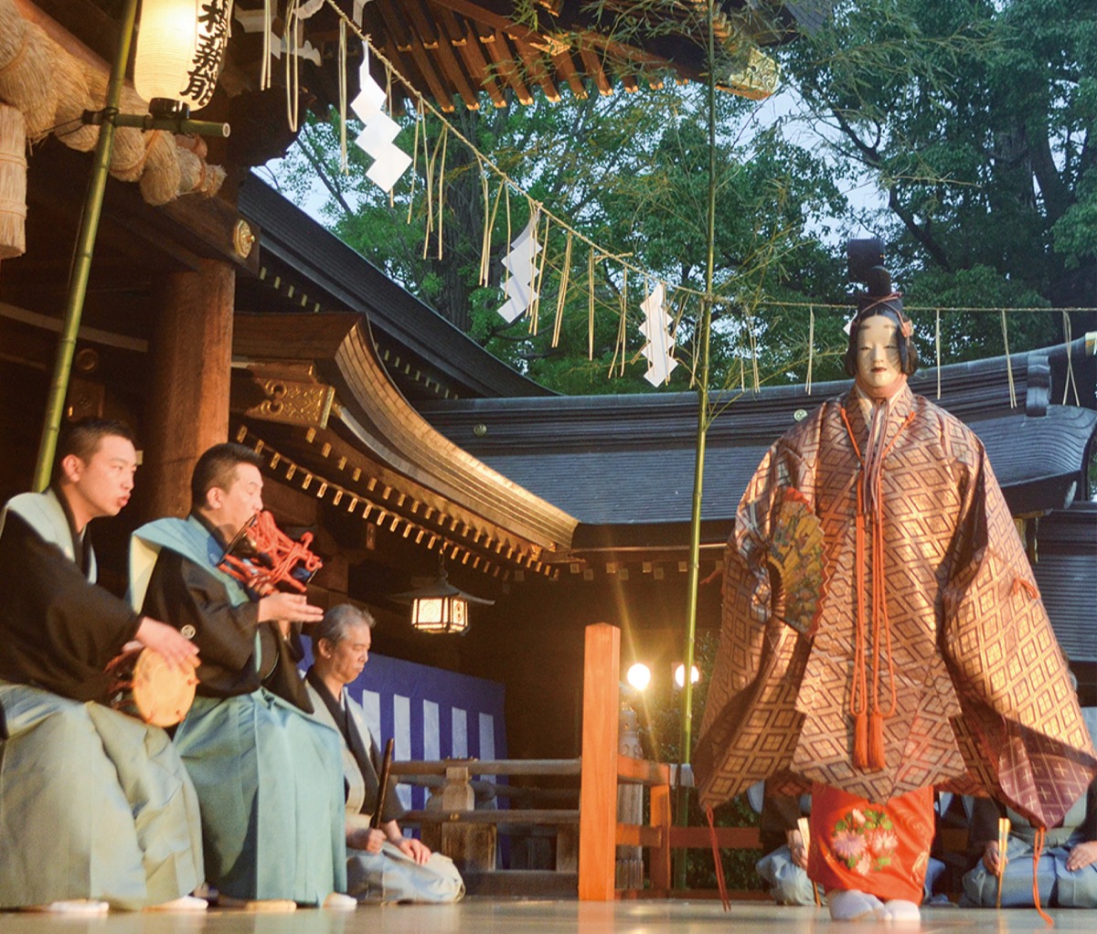 寒川神社(利根康教宮司)境内の特設能舞台で8月15日、平和を祈念する神事能「相模薪能」が行われた。今年で56回目を迎えるこの催しは、1970年から毎年終戦の日に開催されている。