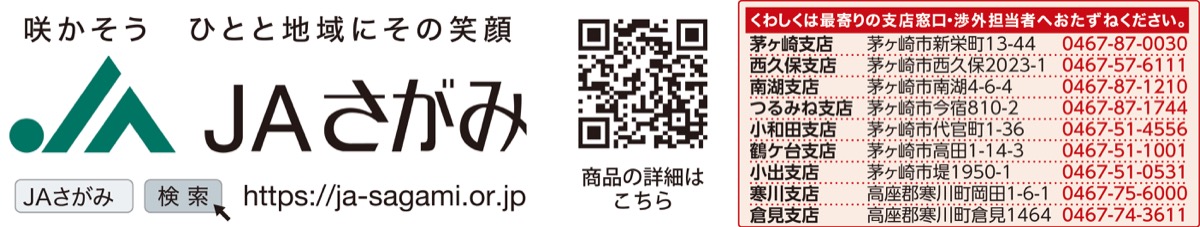 茅ヶ崎市や寒川町など7市1町に42支店を展開する地域密着型の金融機関「さがみ農業協同組合(JAさがみ)」は、組合発足30周年を記念し、2つの新たな定期貯金を秋から開始する。