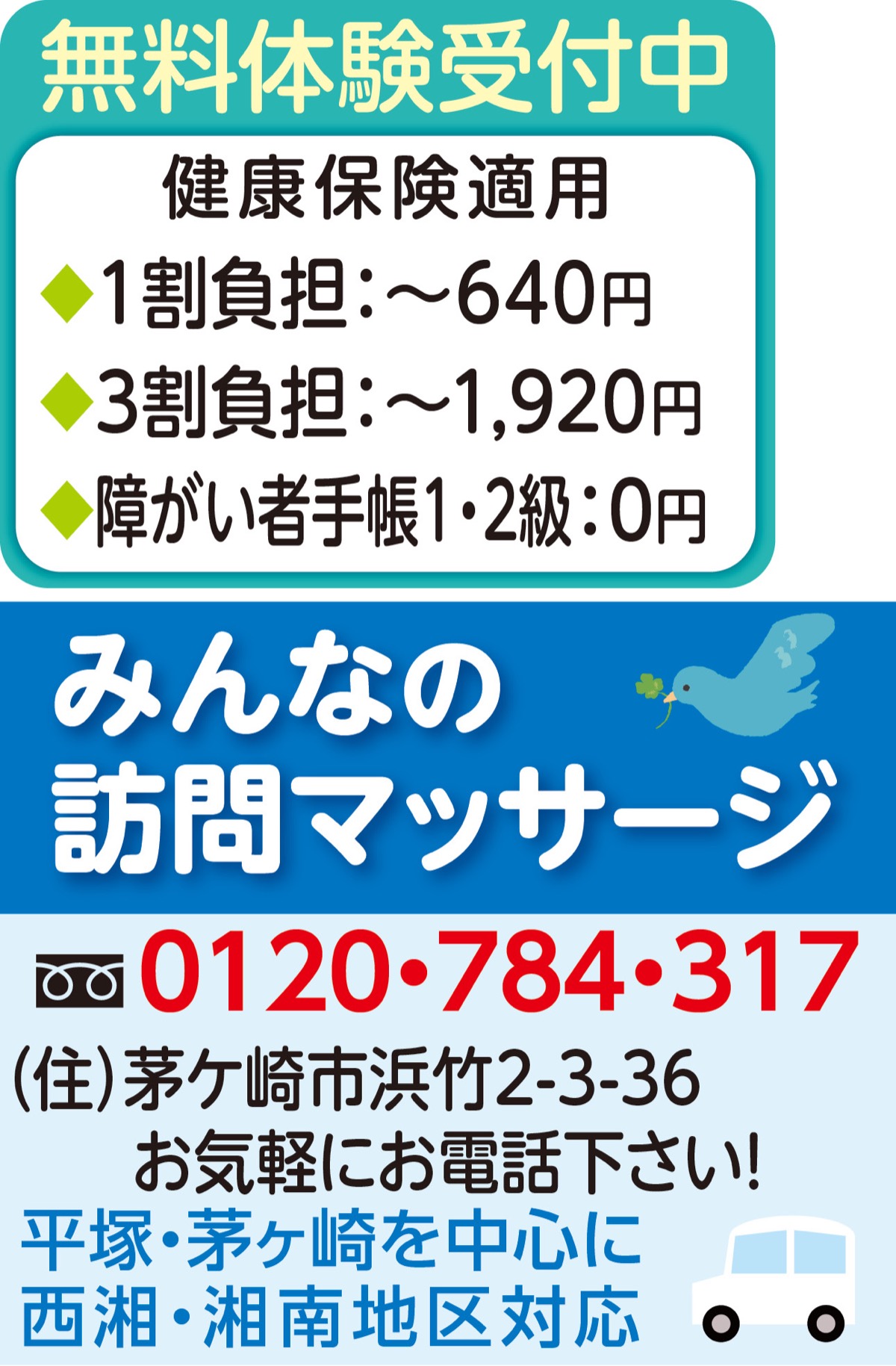 国家資格の鍼灸マッサージ師が自宅や施設を訪問し、保険適用の施術を提供する事業所「みんなの訪問マッサージ」。運動機能の低下や神経・関節痛があり、外出が困難な人向けの健康相談やリハビリマッサージの無料体験を受付中だ。