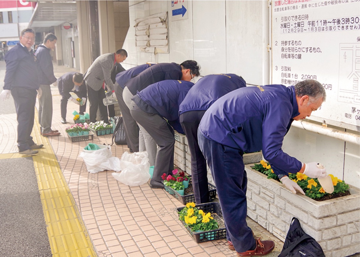 茅ヶ崎ロータリークラブ(=RC/加瀨義明会長)が11月6日、茅ケ崎駅南口花壇の植栽活動を行った=写真上。