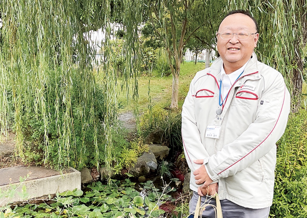 このビオトープは2003年、同社が構内の緑化を目的として、資材置き場に隣接する場所に整備したもの。昨年4月からはさらなる活用を目指して、市職員として長く市内の動植物の調査や保護活動に携わり「茅ヶ崎の自然博士」として知られる岸一弘さんらとともに保全活動に取り組んでいる。