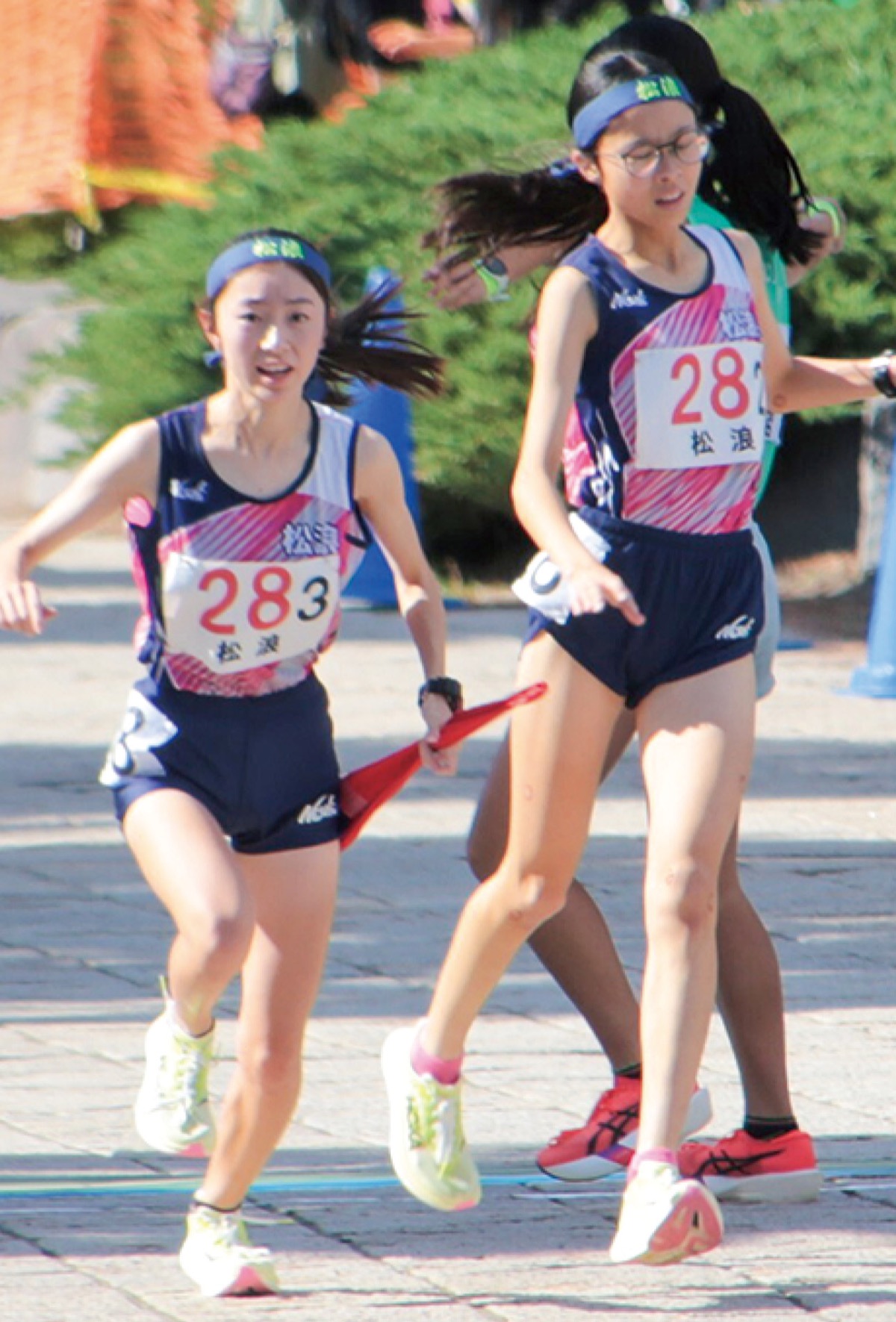女子は5区間11・93Kmで争われた同大会。松浪中は2021年に赴任した陸上部顧問の常磐信欽教諭のもと着実に力をつけており「優勝と全国出場」を目標に臨んだ。