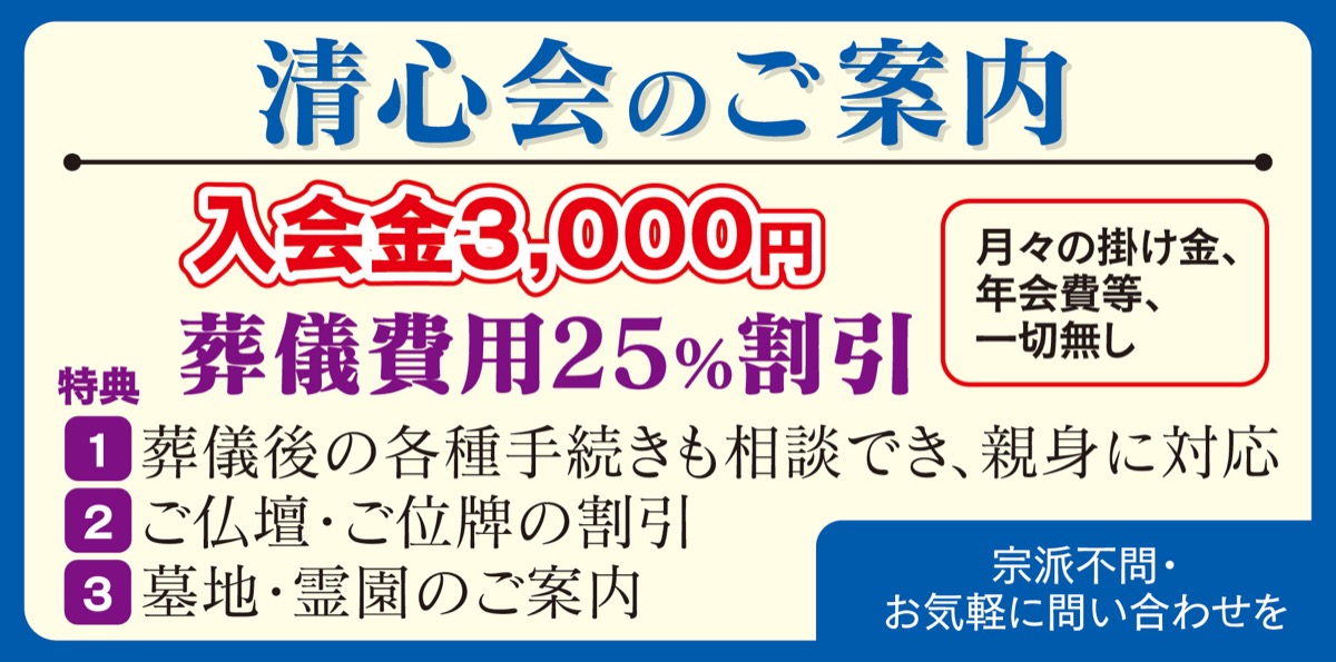 同社の担当者は「葬儀方法などはさまざまありますが、お見送り方、参列される人数などがわかれば、お見積もりもすぐ提示できます。この2点を押さえておくことが大切」とし、「心のこもった葬儀をご提供していきますので、まずはどんな小さなことでも気軽にお伝えください」と呼び掛ける。