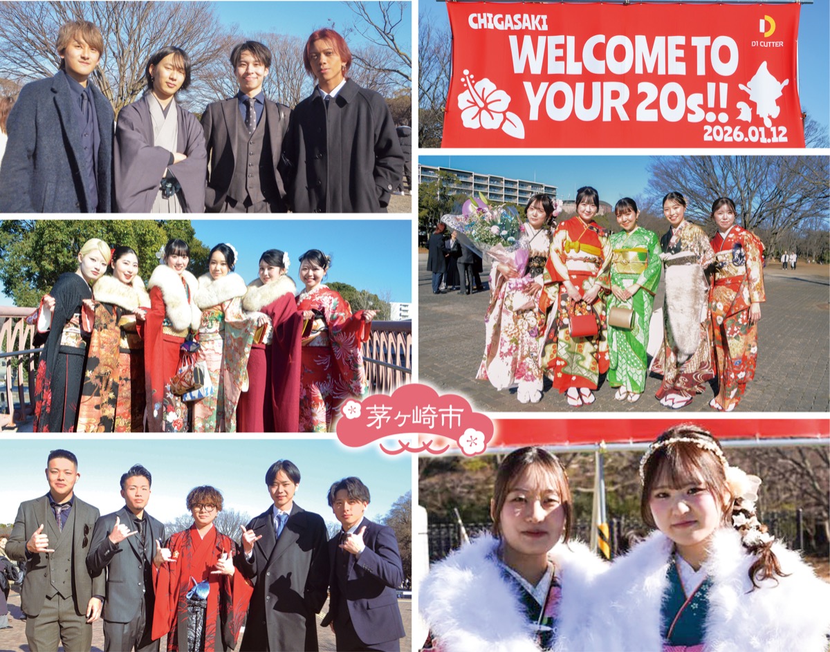 成人の日の1月12日、茅ヶ崎市と寒川町の各会場で20歳を祝う式典やイベントなどが開催された。2005年4月2日から2006年4月1日までに生まれた人が対象で、両市町合わせて2664人がはたちを迎えた。会場では旧友との再会を喜ぶ姿が多く見られたほか、佐藤光市長や木村俊雄町長をはじめ、来賓から祝辞が贈られた。