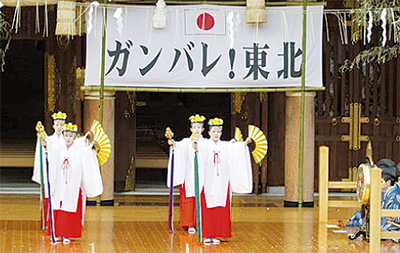 寒川神社の利根康教宮司は「神社の祭りは、自然災害、飢饉等から始まったと言われています。日本は幾度となく困難を乗り切ってきました。今後、何十年も掛かると思いますが、皆で力を合わせ頑張ってもらいたいと思います。頑張れ東北!」と話した。