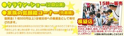 今年で29回を数える同イベントは、寒川町職員労働組合が地域の労働組合の協力を得て開催しているもの。「平和について、地域で家族で考えよう!」をテーマに、また東日本大震災の復興支援もサブテーマに掲げている。当日は焼きそばや棒コロなど飲食物や、ヨーヨーつりなど13店舗の模擬店が出店。バルーンとパントマイムのポルンさんによる「クラウン・ショー」や昨年大好評だった「家族の似顔絵コーナー」も設置される(先着順・希望者多数の場合は制限の可能性あり)。模擬店の純利益及び似顔絵コーナーの協賛金(1枚500円以上)は被災地への義援金に充てられる。