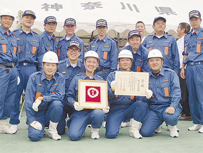 県総合防災センター(厚木市)で7月24日、「第48回神奈川県消防操法大会」が行われ、寒川町消防団が小型ポンプ操法の部で準優勝した。
