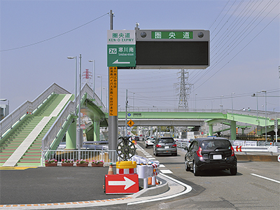 4月14日に寒川町内のさがみ縦貫道が開通したが、寒川南インターチェンジ(IC)のアクセス道路となった都市計画道路藤沢大磯線(丸子中山茅ヶ崎線〜湘南銀河大橋東側)の4車線化が2013年度内に完成する見込みであることが分かった。主にさがみ縦貫道の高架下を通る同路線は現在、片側暫定2車線での通行が可能となっている。