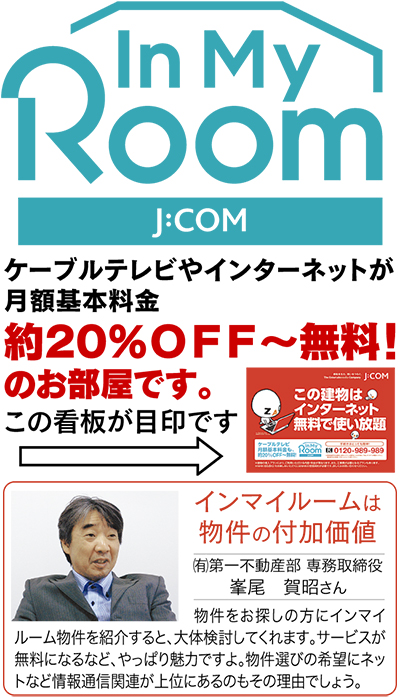 これから入居される方も、大家さんにとっても目が離せないサービスだ。ケーブルテレビ・インターネット大手J:COMのサービス「InMyRoom(インマイルーム)」が好評を博している。