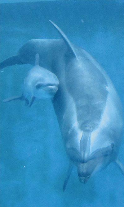 新江ノ島水族館(堀由紀子館長)で4月12日午後10時28分、バンドウイルカの「シリアス」が出産、元気な赤ちゃんが誕生した。