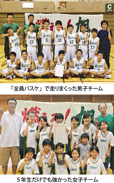 男子チームは主力を6年生8人で形成するが、高身長選手が少ない。その分、走りまくって最後まであきらめないプレーが信条。「スーパーエースはいないが、全員バスケで戦える」と酒井明美コーチはチームの仕上がりに満足そうな表情。